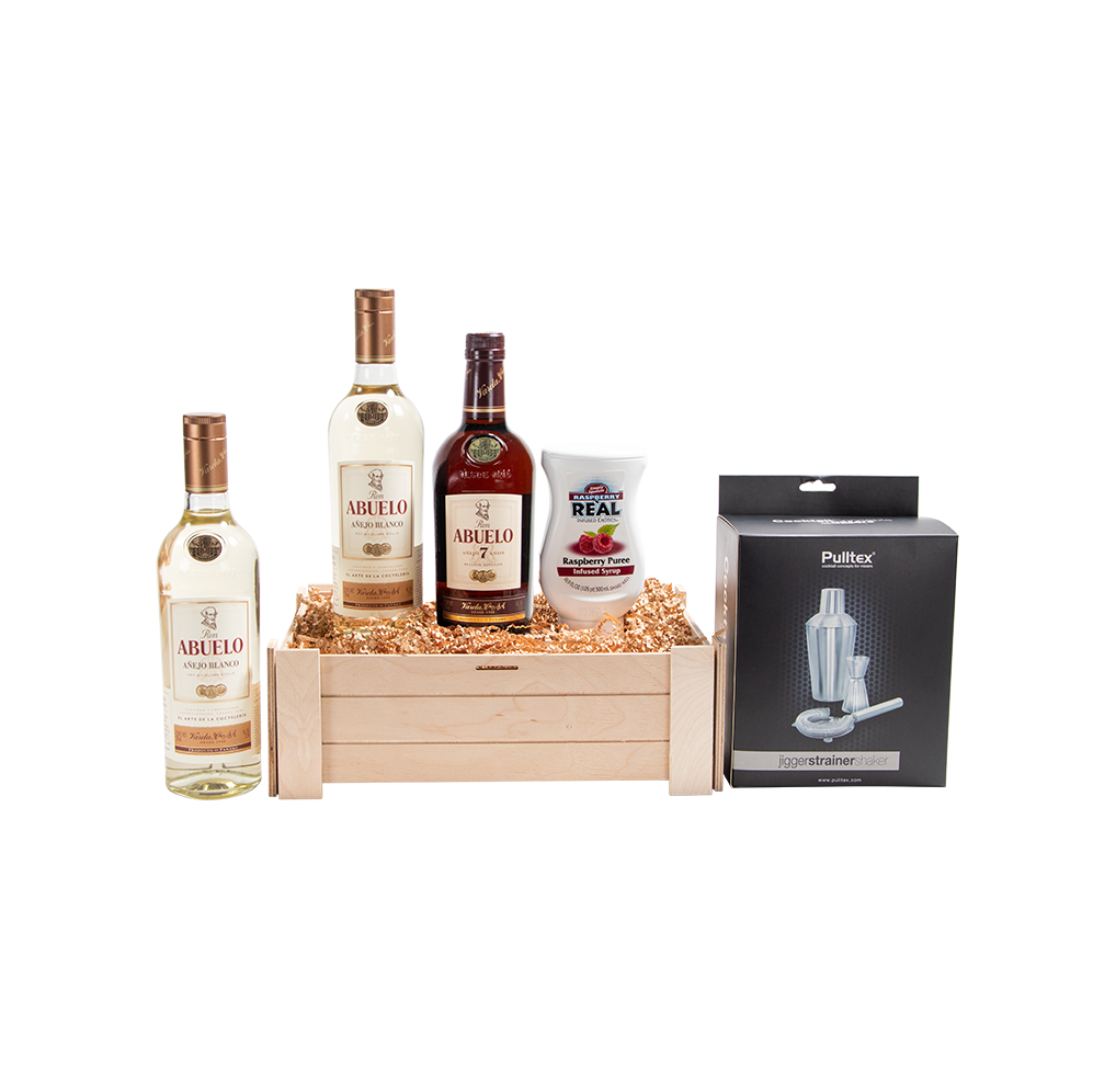 RON ABUELO 7 AÑOS, RON ABUELO AÑEJO BLANCO (2), REAL RASPBERRY PUREE, PULLTEX COCKTAIL SET 3 PCS