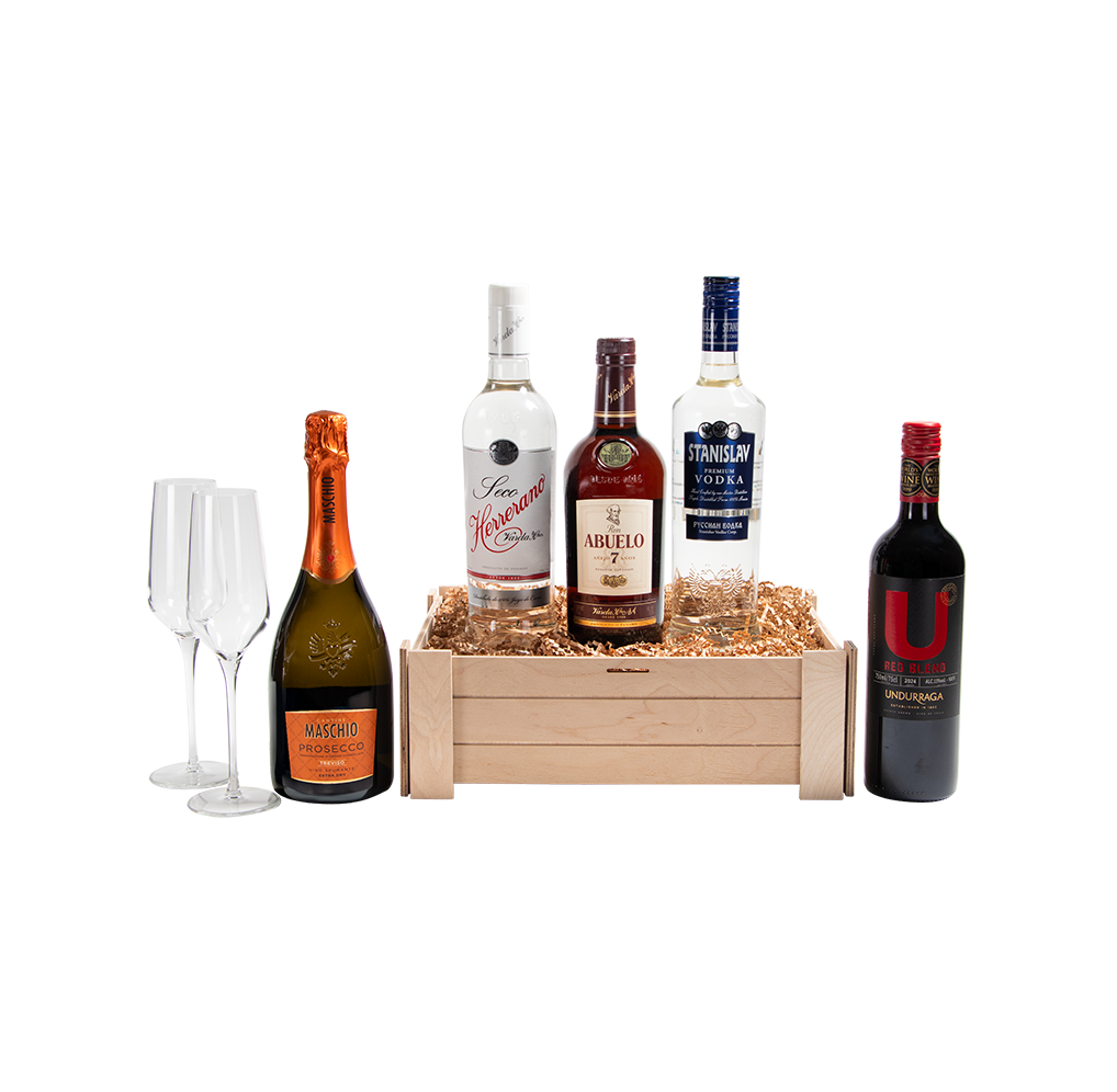 SECO HERRERANO, RON ABUELO 7 AÑOS, VODKA STANISLAV, UNDURRAGA RED BLEND, MASCHIO PROSECCO, COPAS FLAUTA (2)